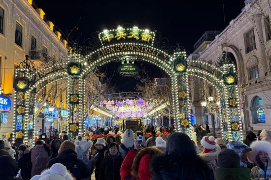 2024年12月26日,哈尔滨中央大街游东谈主如织。新华社记者 杨念念琪摄