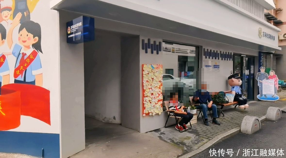 在杭州长庆派出所王马社区警务室门口,民警上班第一件事是扫烟头、瓜果皮。