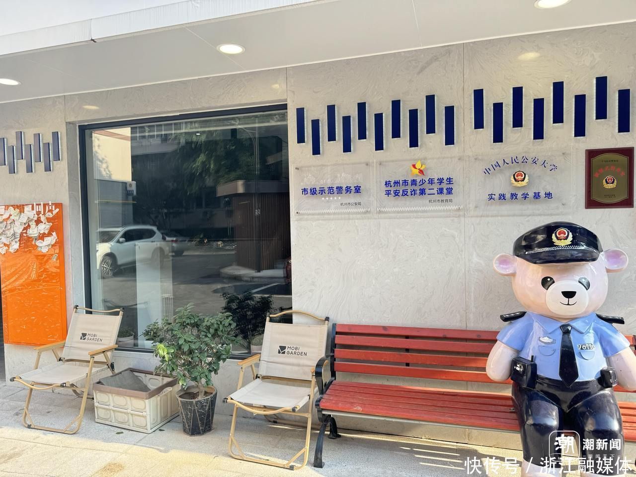 警务室门口有一张棕红色长椅,有一只卡通窥伺小熊,似乎在默然陪同着每个游移的路东谈主。