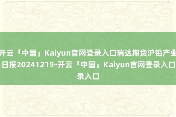 开云「中国」Kaiyun官网登录入口瑞达期货沪铅产业日报20241219-开云「中国」Kaiyun官网登录入口