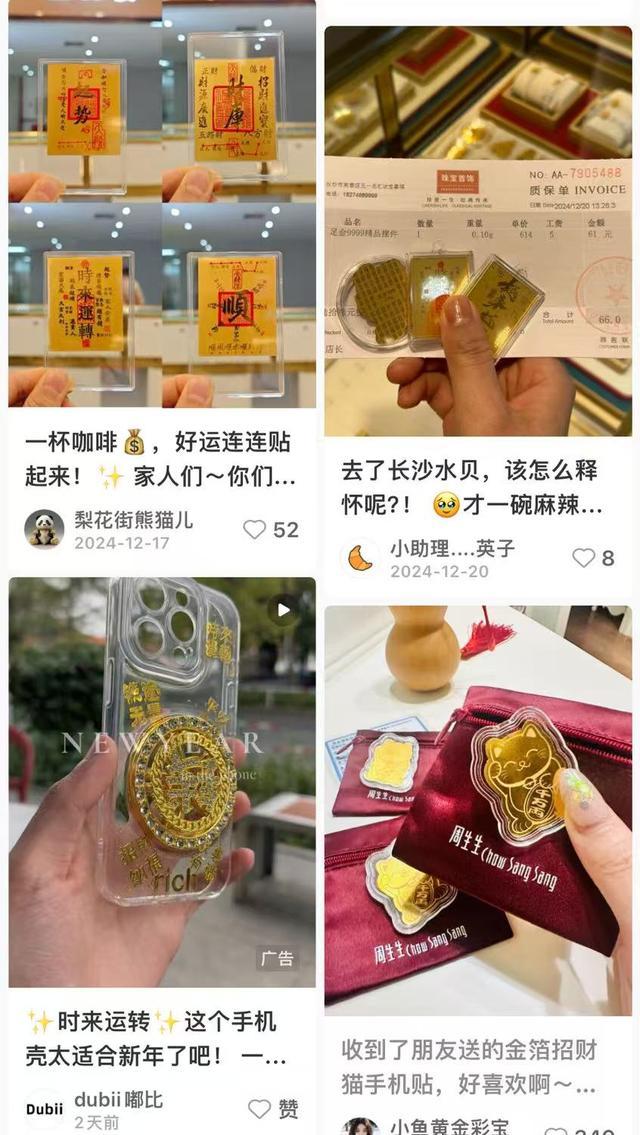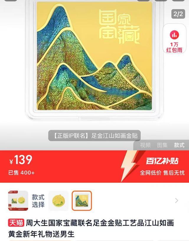 除了传统的“财神爷”“招财猫”等项目外,线上售卖的黄金贴纸还联名了很多着名IP,主打在新年站立清单中大放异彩。