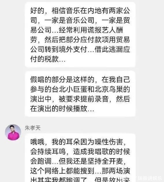 声明里,朱孝天说我方“因网暴导致神态失控”,才在私信里发表了“有失安妥的言论”。但网友们翻出了他此前的爆料:“战胜音乐通同黄牛炒票、逃税、强制艺东谈主假唱”,每一条王人指向明确,细节翔实,确切不像“神态失控”下的无心之失。