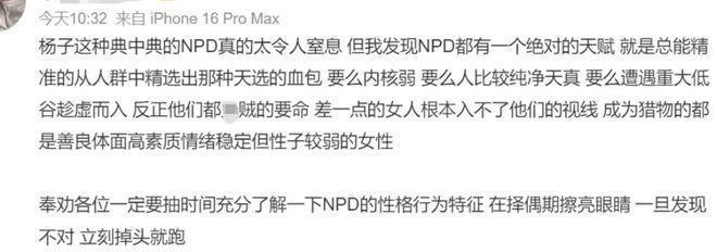有网友以至还给他贴上了“NPD东说念主格”(自恋型东说念主格阻截)的标签,说他那是典型的“自我中心,无视他东说念主”。嘿,这下可好,杨子不仅成了“假富豪”,还多了个“热诚疾病患者”的头衔,这帽子戴的,可真够重的!