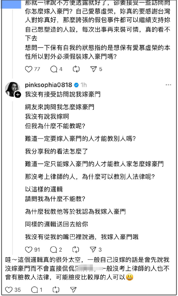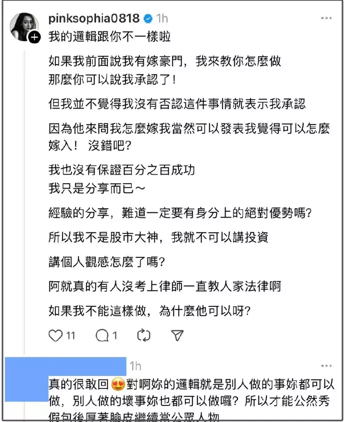 濒临台湾省网友怼她“教怎么嫁朱门”的言论,王念念佳掉包见地抵赖称“难谈没嫁朱门就不可教众人怎么嫁朱门吗”,亦然很会擅辩了。
