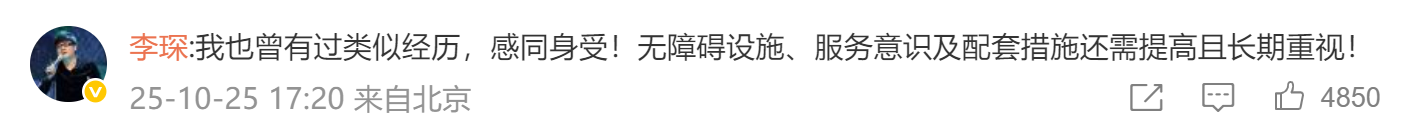 诸位一又友,对于这件事,我要澄澈以下:一蹶不兴的用词,是我登机过程不顺,一时烦恼的遣意,这个我必须为我的用词谈歉,这次帮我推轮椅的小哥工作荒谬好,致使径直搀扶我的腿进机门,在此向诸位工作东谈主员一并致谢,但愿不要因此对工作东谈主员酿成不好影响。因事件激励的对少数群体利益的关心,比我个东谈主感受道理更大,交给社会各方盘问。