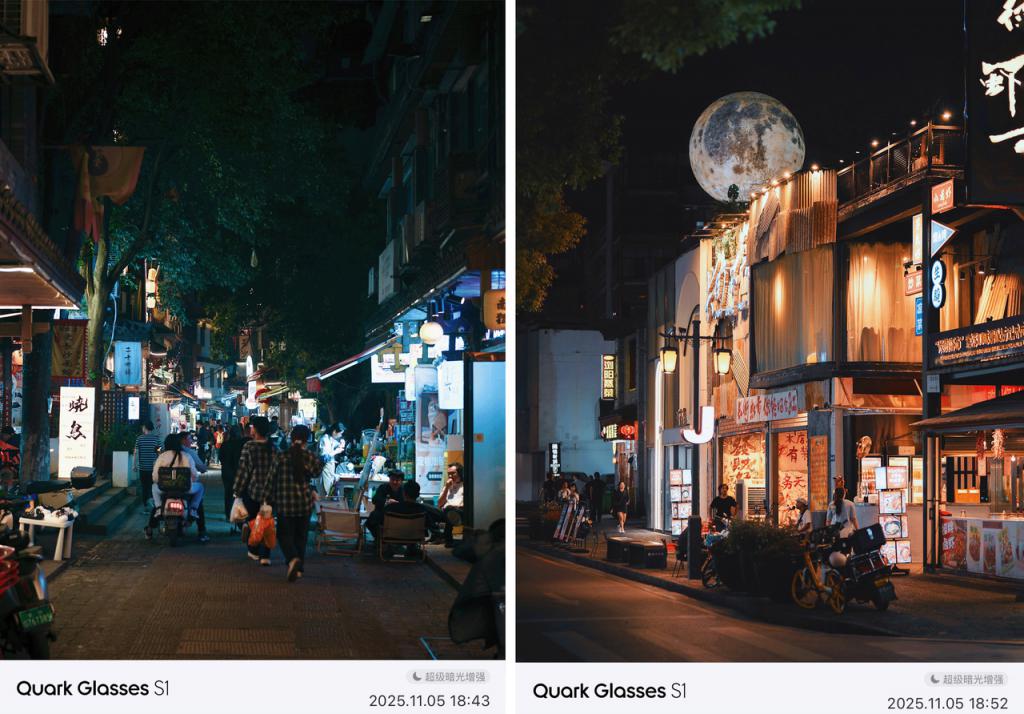 从咫尺官方所展示的拍摄样片来看,夸克 AI 眼镜可谓将夜景拍摄效能打磨到了极致,致使接近部分旗舰手机的影像效能,不错称为这款 AI 眼镜最大的“杀手级”运用场景。昔时,未经软硬系统性算法优化的 AI 眼镜,其夜景拍摄才智每每领会欠安,仅能达到五年前手机的水平,迫害级居品一定不是单纯的「供应链堆砌」。