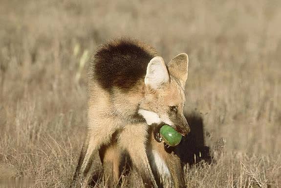 鬃狼是杂食性,它偏向于素食,特殊的爱茹素,取食多种动物和植物性果实,在巴西一带就有纪录跨越一百多种果实和一百多种动物,不外从食谱上看它的主要肉食是微型的脊椎动物,常见的食品包括鼠,棘刺鼠,豚鼠和微型的犰狳,微型鸟类,节肢动物和爬步履物(很少)包括毒蛇,偶尔猎杀小食蚁兽和短角鹿,它有捕杀成年草原鹿的纪录,规律是咬住喉咙使其窒息,终年摄入南好意思狼果,因为它是食品中最关键的果实,在雨季会取食更多的果实,比如柿子椒,咖啡,番木瓜和嫩草,使其的植物食品种类加多,迅速也会猎杀家禽,八成捕杀微型牲畜幼体,然而陈说有待阐发,它莫得行为通晓的岑岭,单独觅食。