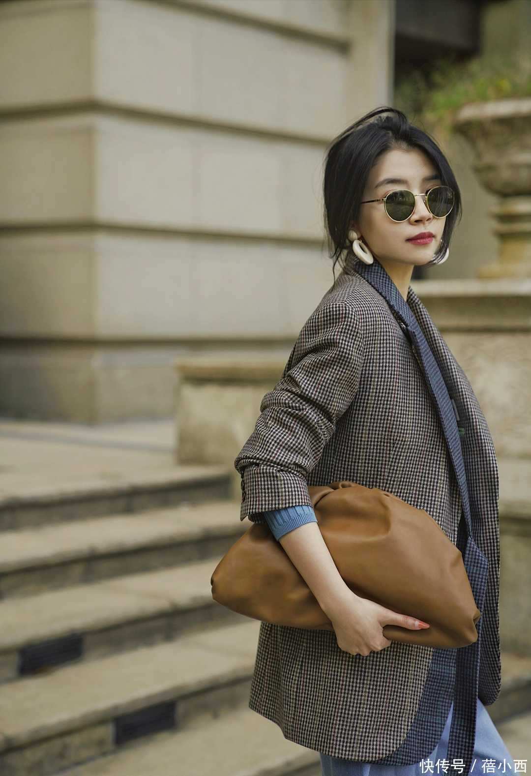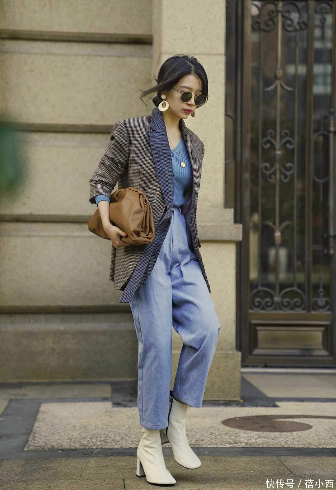 既然依然快步入了早秋,那就一定要聘用妥当秋天、不显虚夸的心思,像这位博主聘用的棕色西装就会在视觉上给东说念主很秋日的嗅觉。
