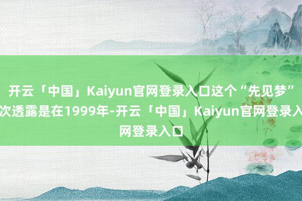 开云「中国」Kaiyun官网登录入口这个“先见梦”初次透露是在1999年-开云「中国」Kaiyun官网登录入口